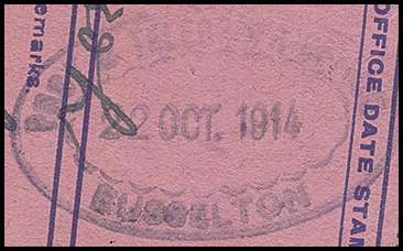 ![]() 12 January 1915. Used on a pair of Postage Due stamps. Image kindly provided by Malcolm Brown, WA. |