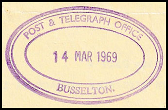 ![]() Telegram sent from Quindalup to Busselton on 6 October 1903. Has a magnificent rubber oval date stamp for Busselton - the earliest recorded. |