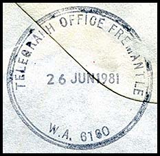| 4. A fourth rubber oval TELEGRAPH OFFICE date stamp (RO2-TO) was also used. It included "W,A. 6330" at the base and ALBANY was in 3 mm high letters.